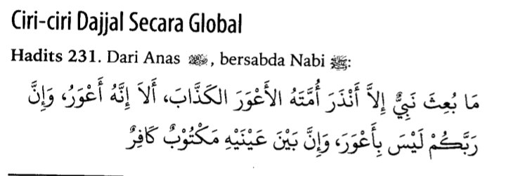 itu buta sebelah matanya dan sesunguhnya Pemelihara kalian itu tidaklahbuta sebelah. Dan sungguh di antara keduamatanya (kedua